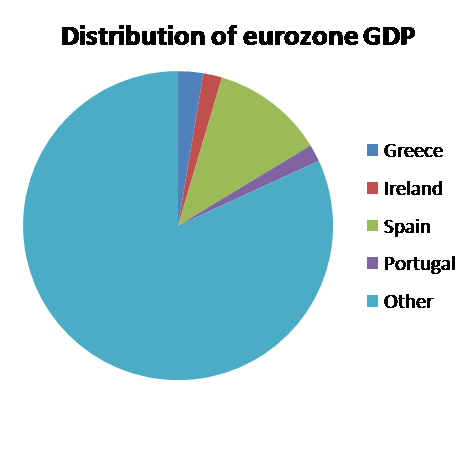 Greece has been hiding the true nature of its deficits and its debt using clever derivatives dreamed up by Goldman Sachs.Why is this important? Remember, Krugman's pie chart tells us that Greece's economic output is only a tiny fraction of the overall economic output of all of Europe. Things are bad for the Eurozone, he says, but not that bad.